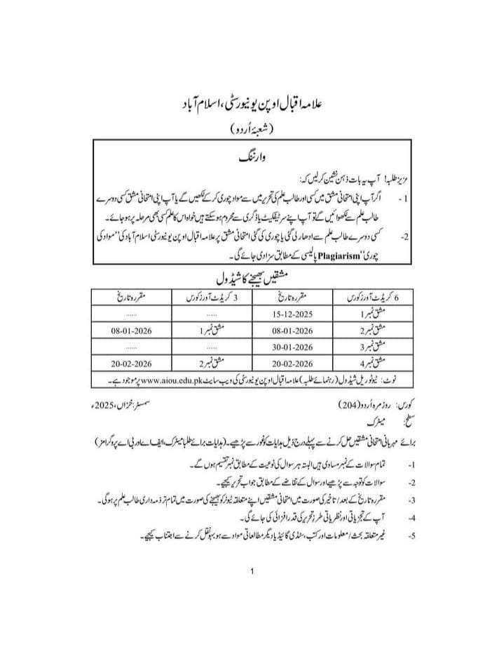 For the Autumn Semester 2025, the university has released the AIOU Urdu Assignment Schedule 2025, providing a complete roadmap for Urdu Department students.