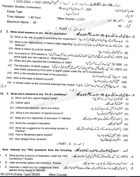 Pak Study Past Paper 2nd Year Preparing for board exams is always considered a tough task, especially when it comes to compulsory subjects like Pakistan Studies. Pakistan Studies is not only compulsory for second year students but also provides the best opportunity to score good marks. The most effective way to achieve outstanding success in this subject is to solve previous years’ papers. These Pak Study Past Paper 2nd Year not only help in understanding the exam pattern but also provide a clear idea of ​​the important topics and the style of questioning.