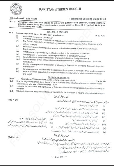 Pak Study Past Paper 2nd Year 2022Pak Study Past Paper 2nd Year 2023